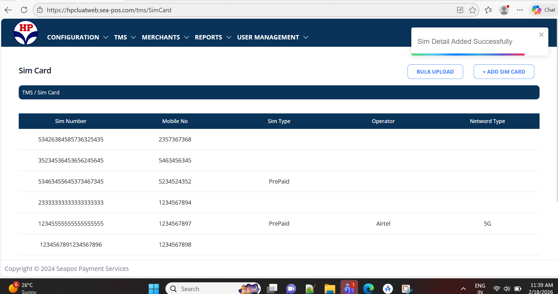 URL referred is https://hpcluatweb.sea-pos.com/tms/SimCard
