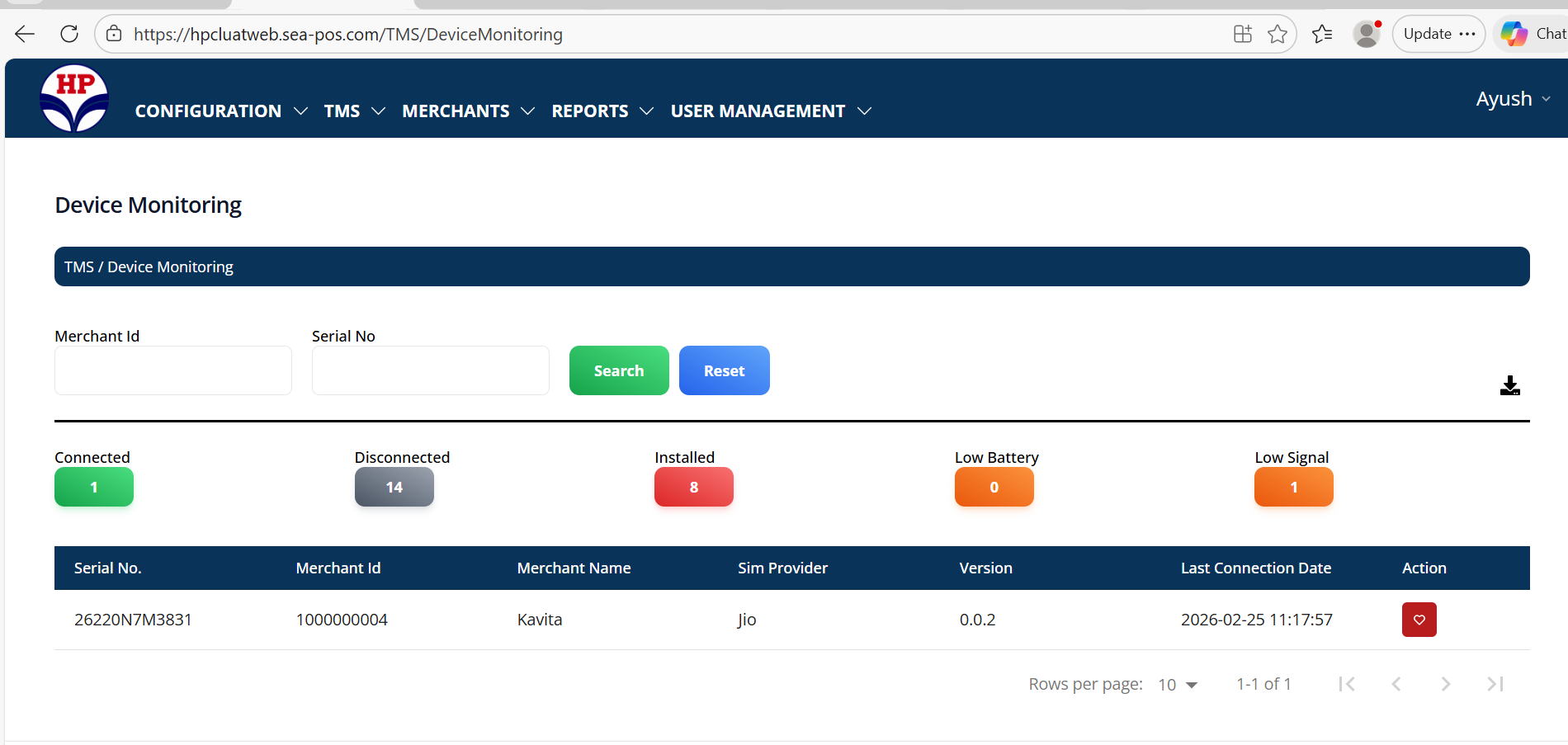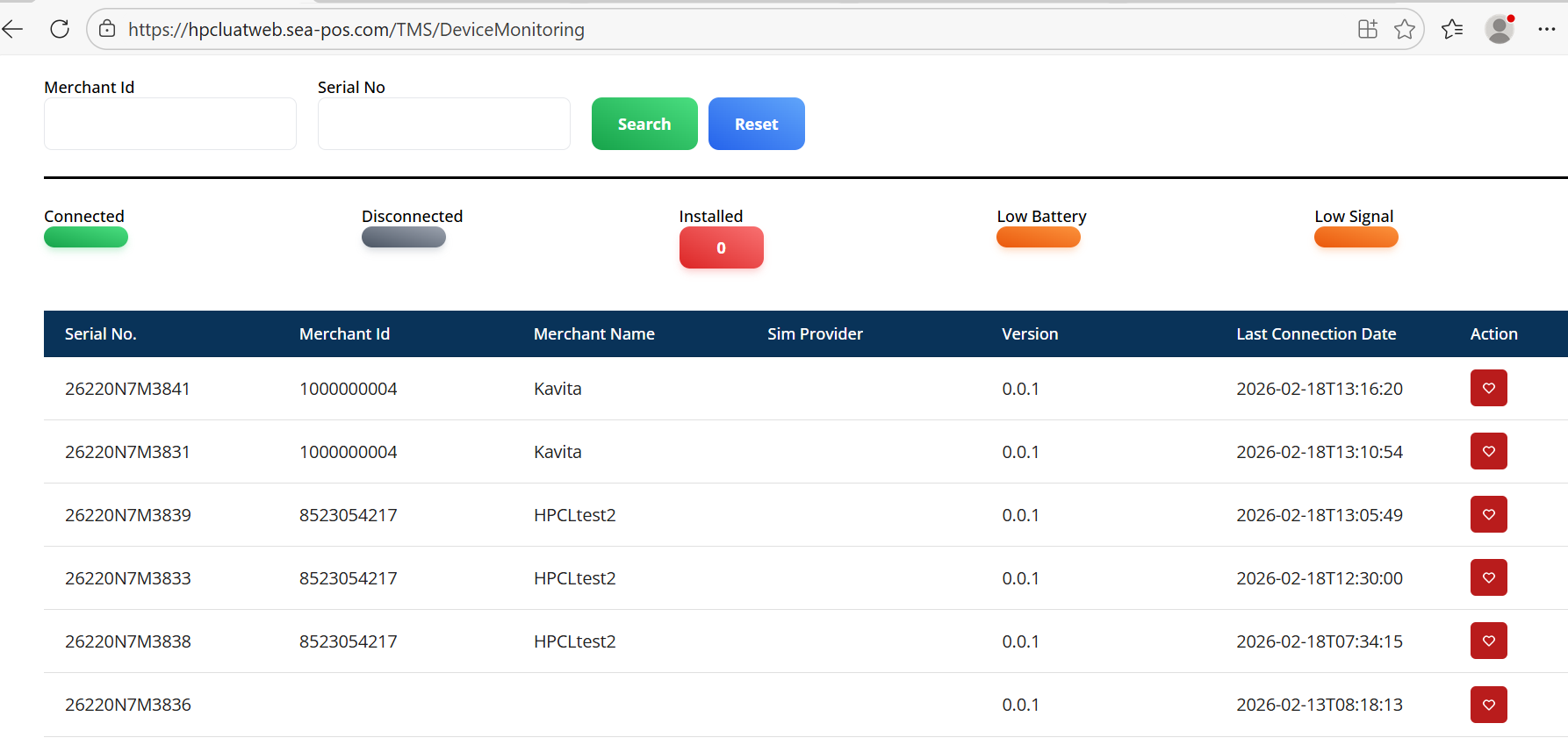 Referred url is https://hpcluatweb.sea-pos.com/heartbeat-details