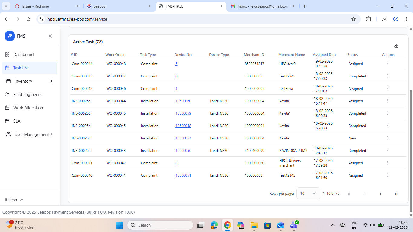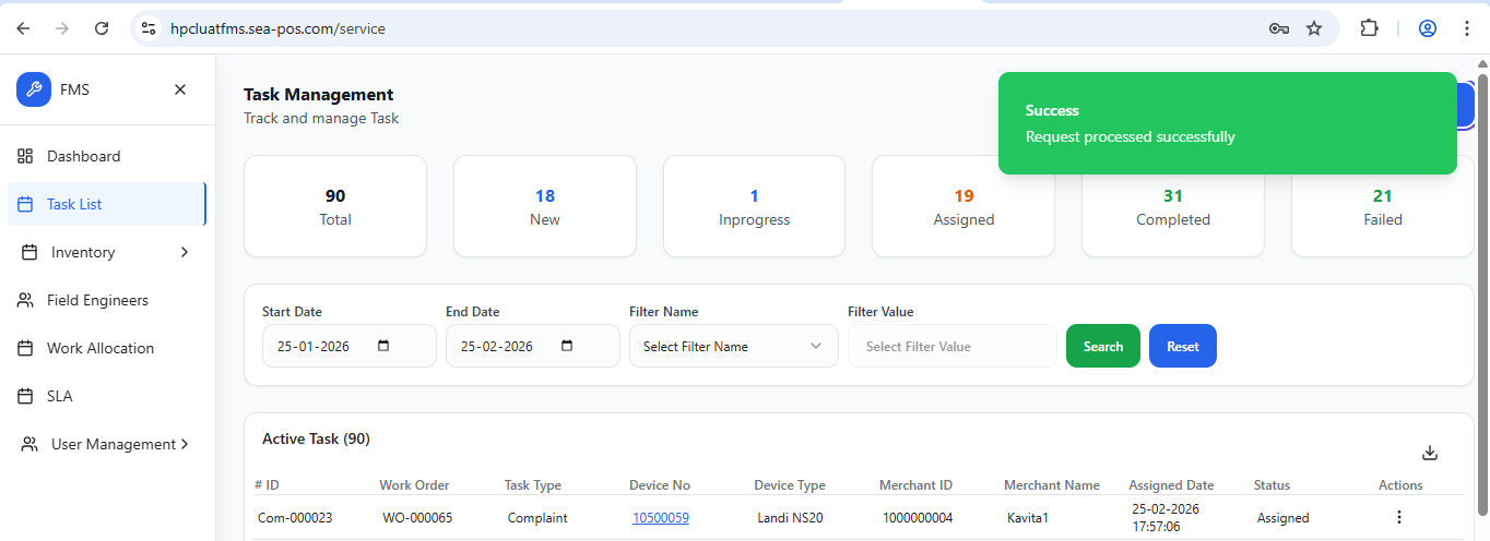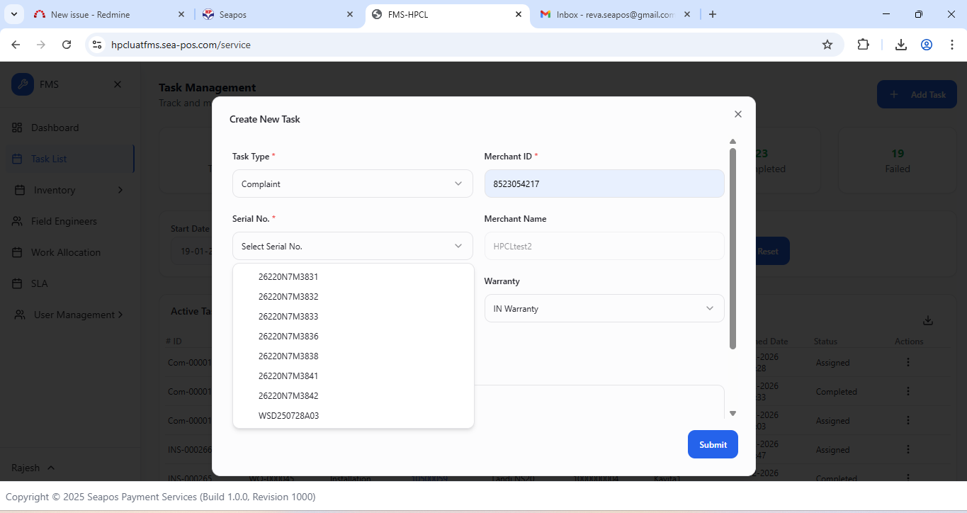 closedUAT | FMS WEB | Errors while creating complaint task.