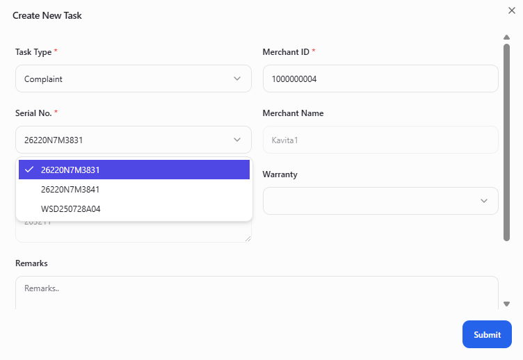 2. Serial no. dropdown does not show actual binded devices and also shows some unbinded devices.