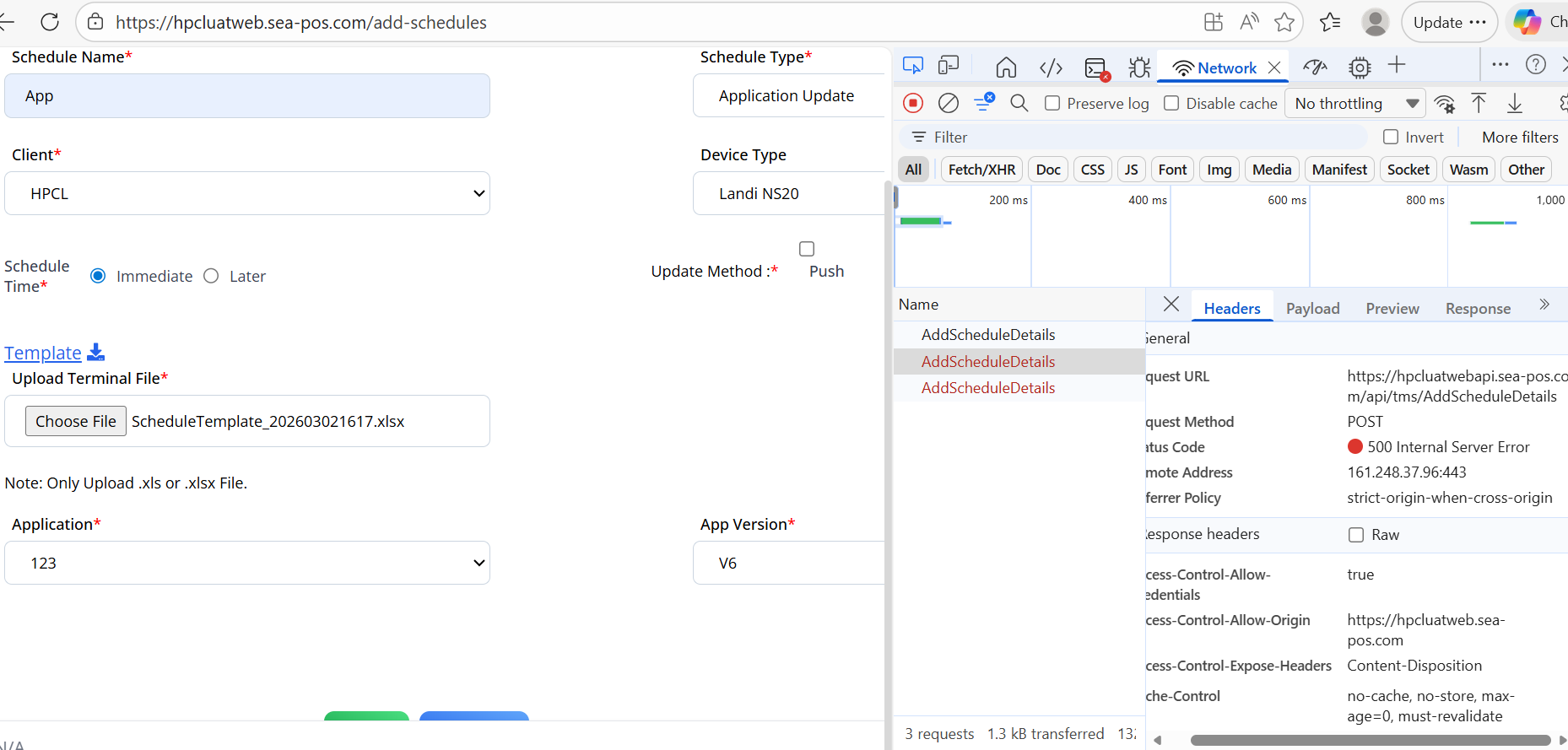 Actual Result: Getting 500 in response code