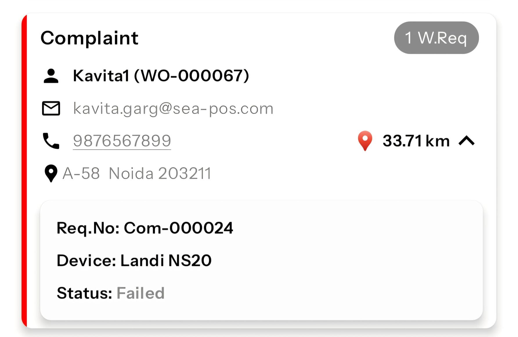 The distance shown between merchant location and current location of the field engineer is incorrect.