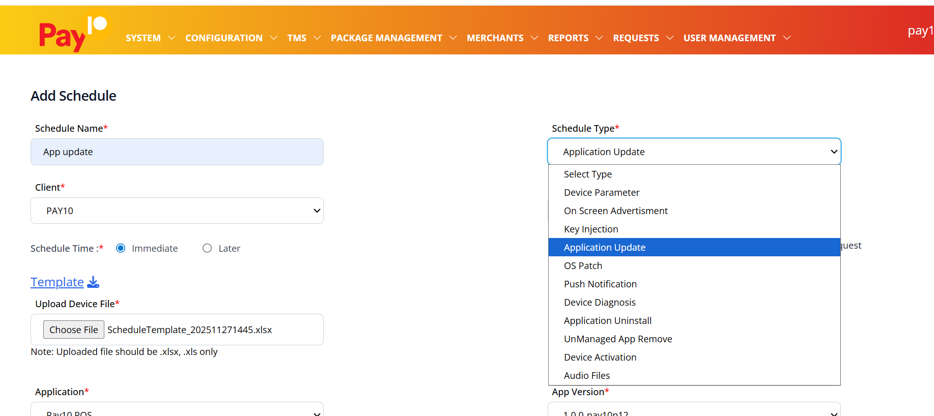 Go to schedule and create application update schedule for device and select application which already listed in app store or installed in device .