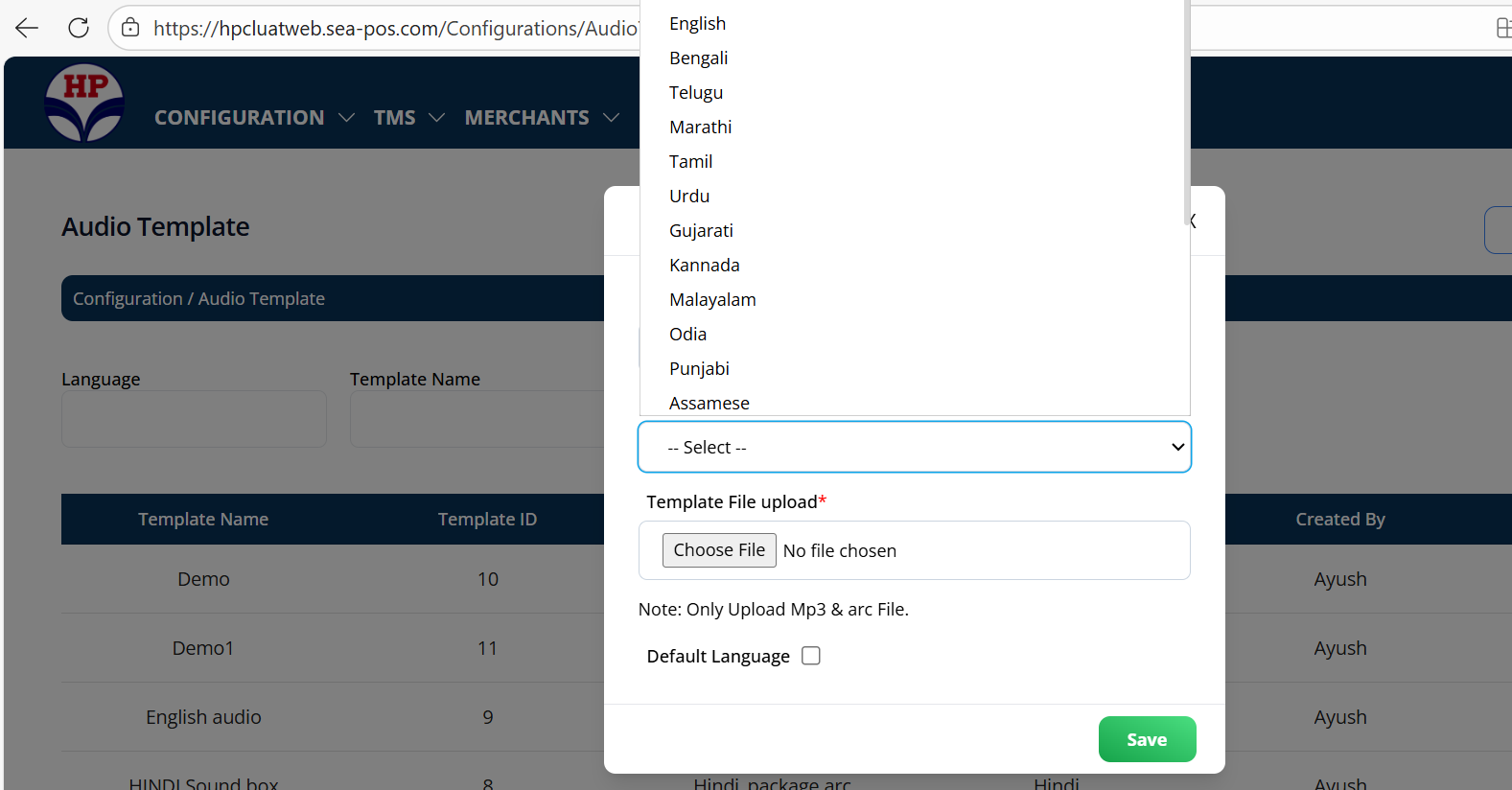 URL referred is https://hpclweb.sea-pos.com/