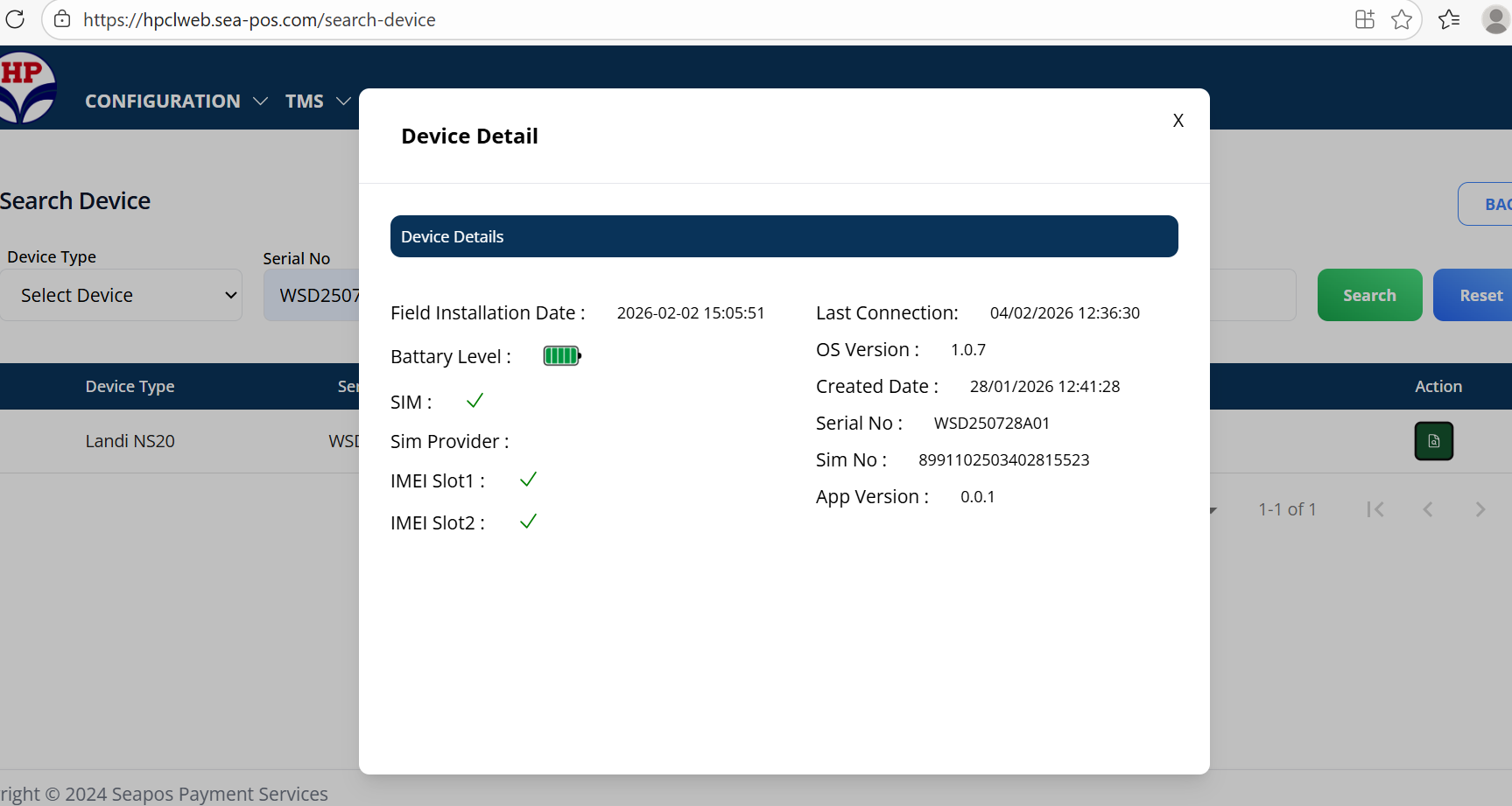When navigate to device detail in TMS heartbeat data should reflect with all real time but found only last connection details in Device device details
